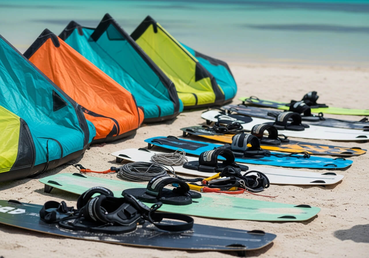 A kitesurfing equipment package comes with the complete setup you need. The board matches your weight — shorter boards for advanced riders, longer ones for beginners or calmer days. Kites range from smaller sizes for stronger weather to larger ones when the breeze stays lighter. The kitesurf harness adjusts to fit properly, which matters when you’re riding for hours.