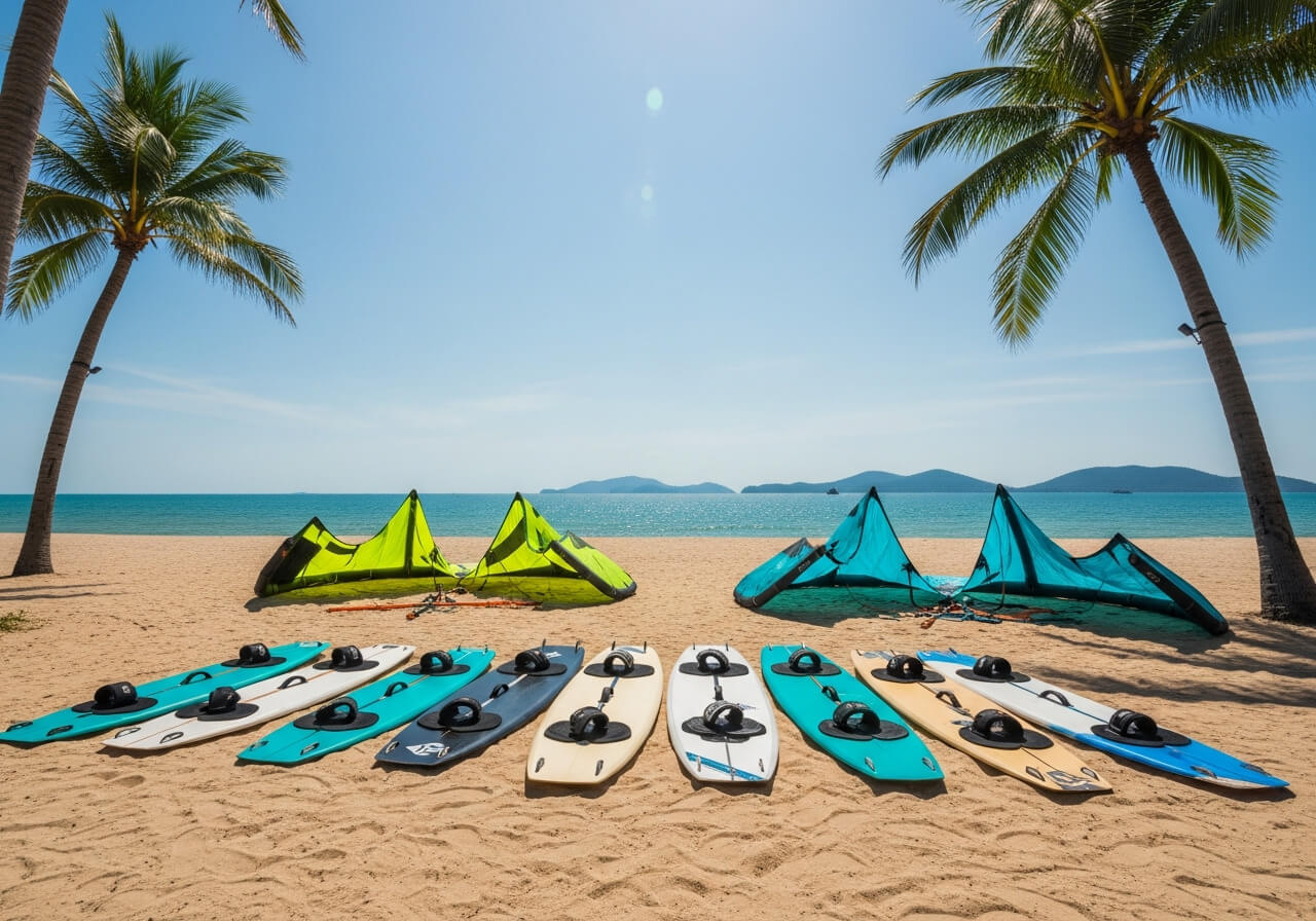 Rent kitesurfing gear online or contact directly. Peak season requires advance booking because equipment quantity stays limited. Specify your weight, experience level, and preferred kite sizes when booking. This helps operations prepare appropriate gear.